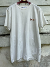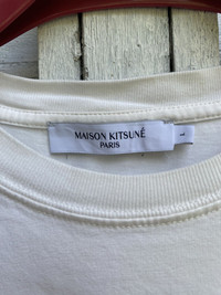 please read description below used item sold as it size: L brand: maison kitsune design: white t material: cotton condition: no physical damages see pictures Paypal only for business thanks