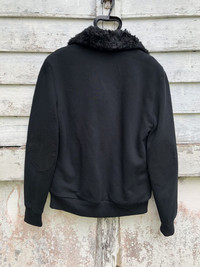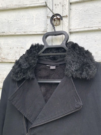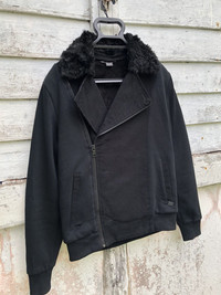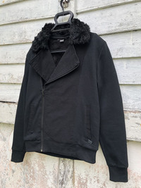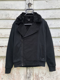 ARMANI EXCHANGE ASYMMETRICAL ZIPPER FAUX FUR NECK JACKET