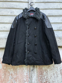 BEN DAVIS X SPAZ COW HIDE FAUX FUR LINING WOOL COAT