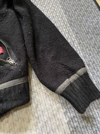 please read description below please compare your size with measurements given remember this is used item size: L brand :Dickies product: Knit Bomber Jacket Sex : Best , Men condition: used/good payment via Paypal /Stripes only thanks for your visit
