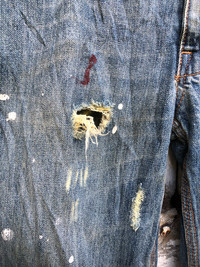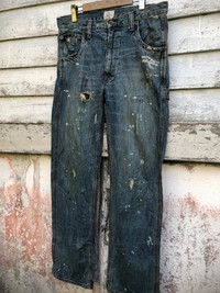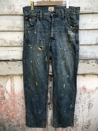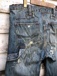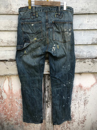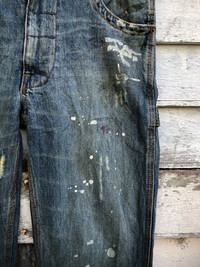 Distressed Denim - Blue Union Made Distressed Paint Splash Carpenter Denim