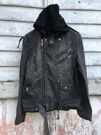 Distressed Denim - In The Attic Hybrid Hooded Distressed Denim Jacket