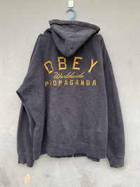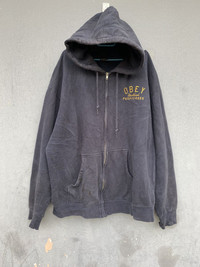 please read description below used item sold as it size: L brand: Obey design: Zipper Hoodie material: Cotton condition:very used See pictures given Paypal only for business thanks