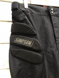please read description below used item sold as it size: 4L waist 34-36 inch length/outseam 45 inch inseam 33 inch front rise 14 inch Hip 22 inch Thigh 12 inch Knee 9.5 inch Leg opening 8 inch brand: Simpson design: padded mesh pant condition: good / minor flaw , refer pictures Paypal only for business thanks