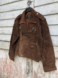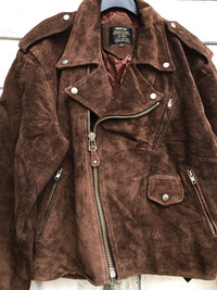 please read description below please compare your size with measurements given remember this is used item size: L brand : Rider Jac product: Double Collar Suede Leather condition: good/ got repair tear mark others good payment via Paypal only thanks for your visit