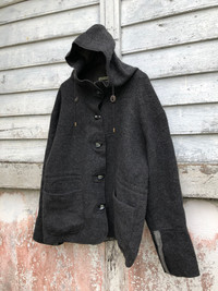 please read description below used item sold as it size: S brand: Gloverall design: hooded button jacket material: wool/ lana condition: used but no abuse Paypal only for business thanks