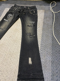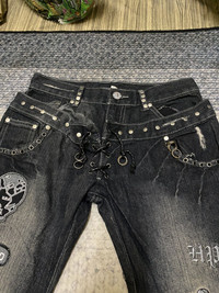 Japanese Brand - HPP DOUBLE WAIST DISTRESSED STUD FLARED JEAN