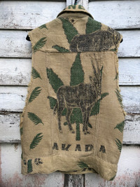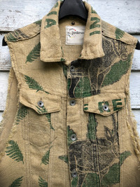 Japanese Brand - Jack Rose Marijuana Leaf Print Raw Seam 100% Linen Vest