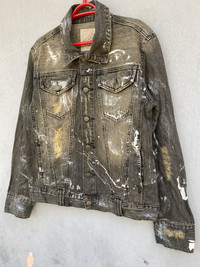 please read description below please compare your size with measurements given remember this is used item size: L Asia fit M us brand : Midas product: Distressed denim jacket condition: used/good payment via Paypal only thanks for your visit