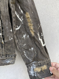 Japanese Brand - MIDAS WASHED BLACK DISTRESSED PAINTER DENIM JACKET ANARCHY