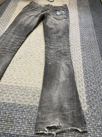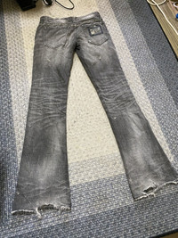 please read description below used item sold as it size: 42 fit Waist 29 inch Inseam 32 inch brand: The murder License design: stud distressed flared denim material:l cotton condition: used heavily See pictures given Paypal only for business thanks