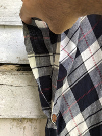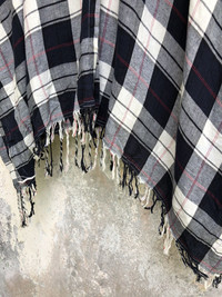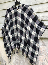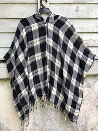 Japanese Brand - Woman Plaid Shawl Laces Single Button Hood Poncho