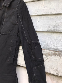 please description below used item sold as it size: tagged M but more fit S brand: marithe francois girbaud design: raw finish patch design coat material: cotton condition: excellent Paypal only for business thanks
