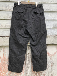 Thanks for viewing my item😁 ⛔️Please remind,this is used item do not expect it like new or in pristine condition Description: VTG BULAG AUERBACH GERMAN THW CIVIL MILITARY GRAY WOOL PANTS 34x40 HIKING SNOW Vintage Gray Military Wool Pants by Bulag, Auerbach circa 1960s This is a very cool pair of Cold War Era gray wool pants. They were made by Bulag Auerbach for the THW in East Germany. That means they were primarily used for civil purposes: "The functions of the THW consist in providing technical relief in the sectors of civil defense, disaster relief, and international humanitarian assistance. The main fields of activity are rescue, salvage and rehabilitation, of infrastructure (water, electricity and sewage)." They are in excellent pre-owned/vintage condition. Do not appear to have been worn often. Features: Button down front and rear pockets Reenforced knees Button Fly Adjustable cinch straps for tightening the waist These are the perfect pants for winter recreation: hiking, camping, mountaineering Brand: BULAG AUERBACH Size: Waist 34 inch Length / Outseam 40 inch Material : wool Condition: used (my opinion : 7/10) Paypal only Thanks for your visit peeps Have a nice day