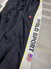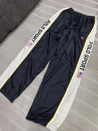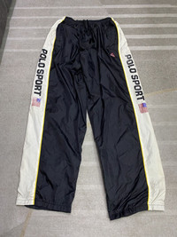 please read description below used item sold as it size: L brand: Polo Sport design: Track Pant material:Nylon condition: used/print crack/ w/proof coating lining peel due to aging See pictures given Paypal only for business thanks