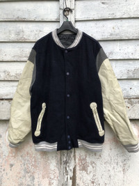 Please read description below Please compare your size measurement Used item Sold as it look like Size L Pit 24 inch Length 28 inch Material Body wool Arms leather Leather trim lining Payment : Paypal Shipping: Malaysia post air mail Tracking will updated after shipping Thanks for looking Follow my shop for great stuff