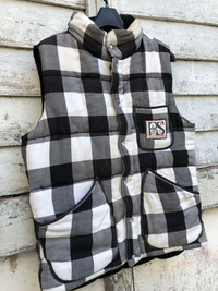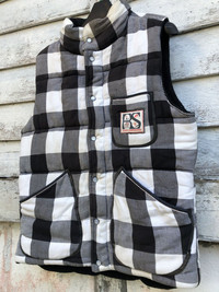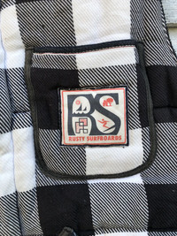 Rusty Surfboard Plaid Black Pearl Snap Padded Vest
