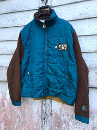 please read description below used item sold as it size: M brand: Starter design: quilted jacket can turn to vest material: polyester condition: good 7.9/10 have sign of use Paypal only for business thanks