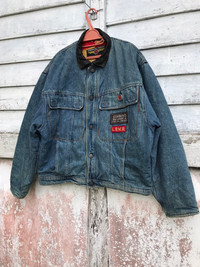 Pleasure compare your size measurement With provided size given Used item Sold as it look like Oversized jacket Denim jacket Blanket lining Size L Armpit 25 inches Length 27 inches Shoulder 22 inches Arm 25 inch See pictures given All payment via PAYPAL only Shipment : Standard Express (DHL) add 35$ Thanks for looking Follow my shop Stay safe