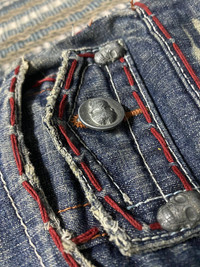 please read description below used item sold as it size: Tagged 40 but manually fit Waist 42 inch Inseam 29 inch brand: Laguna Beach Jean design: Distressed Jean material: cotton condition: Distressed/ripped/ missing skull button back pocket See pictures given Paypal only for business thanks