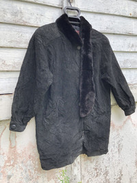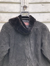 VINTAGE LANCEL STRUCTURE LEATHER COAT FUR NECK