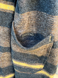 Good Condition, got tiny pinholes Size: S Composition: Cotton, Acrylic, Polyester Measurements in Inches: Garment Lying Flat. Armpit to Armpit: 17.5 Top to Bottom: 24: •Yes this item is still available. •It will not be sold out or cheaper off site. •Hit purchase with confidence, your item will be shipped out within 3-5 business days of purchase; tracking is always included. •I curate items to be sold as is and often rework them including tie-dye, bleaching, distressing and stretching. •I do not wash clothing due to possible allergic reactions from the different types of detergents. •Flaws have been shown in the pics. Please use the zoom feature for more details. •Please leave your phone number on the note while make a purchase. •Ask as many questions as you like. All items are final sale. Our business policy is 100% Customers Satisfaction. So don't worry about purchasing an item from us. We are looking forward to having business with many customers.Thanks.