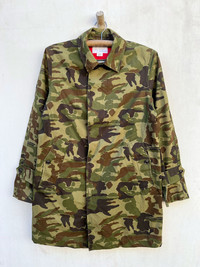 Very Good Condition Size: S Composition: Face 100% Cotton, Back 100% Nylon Measurements in Inches: Garment Lying Flat. Armpit to Armpit: 20.5 Top to Bottom: 34.5 Shoulders:16 Sleeve Length:25 •Yes this item is still available. •It will not be sold out or cheaper off site. •Hit purchase with confidence, your item will be shipped out within 3-5 business days of purchase; tracking is always included. •I curate items to be sold as is and often rework them including tie-dye, bleaching, distressing and stretching. •I do not wash clothing due to possible allergic reactions from the different types of detergents. •Flaws have been shown in the pics. Please use the zoom feature for more details. •Please leave your phone number on the note while make a purchase. •Ask as many questions as you like. All items are final sale. Our business policy is 100% Customers Satisfaction. So don't worry about purchasing an item from us. We are looking forward to having business with many customers.Thanks.