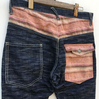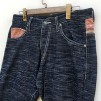 Waist: 30 up to 31 Inches Very Good Condition, minor pinholes on back hips Size: Refer Measurement Composition: 100% Cotton Measurements in Inches: Garment Lying Flat. Inseam: 33 Outseam:44 Leg Opening: 8 Rise:11 Hips:22 Thigh:12 •Yes this item is still available. •Yes I ship to your country. •I Ship Via Dhl Express. •It will not be sold out or cheaper off site. •Hit purchase with confidence, your item will be shipped out within 3-5 business days of purchase; tracking is always included. •I curate items to be sold as is and often rework them including tie-dye, bleaching, distressing and stretching. •All clothing should be washed first after receiving it. •Flaws have been shown in the pics. Please use the zoom feature for more details. •Ask as many questions as you like. All items are final sale. Our business policy is 100% Customers Satisfaction. So don't worry about purchasing an item from us. We are looking forward to having business with many customers.Thanks.