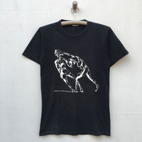 Very Good Condition Size: S Composition: 100% Cotton Measurements in Inches: Garment Lying Flat. Armpit to Armpit: 17.5 Top to Bottom: 27 •Yes this item is still available. •It will not be sold out or cheaper off site. •Hit purchase with confidence, your item will be shipped out within 3-5 business days of purchase; tracking is always included. •I curate items to be sold as is and often rework them including tie-dye, bleaching, distressing and stretching. •I do not wash clothing due to possible allergic reactions from the different types of detergents. •Flaws have been shown in the pics. Please use the zoom feature for more details. •Please leave your phone number on the note while make a purchase. •Ask as many questions as you like. All items are final sale. Our business policy is 100% Customers Satisfaction. So don't worry about purchasing an item from us. We are looking forward to having business with many customers.Thanks.