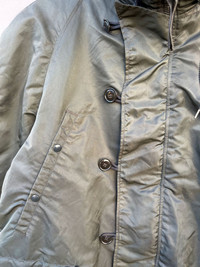Cracked 2 button up buton. Good Condition Size: XL Composition: 100% Nylon Shell Measurements in Inches: Garment Lying Flat. Armpit to Armpit: 29 Top to Bottom: 33 •Yes this item is still available. •It will not be sold out or cheaper off site. •Hit purchase with confidence, your item will be shipped out within 3-5 business days of purchase; tracking is always included. •I curate items to be sold as is and often rework them including tie-dye, bleaching, distressing and stretching. •I do not wash clothing due to possible allergic reactions from the different types of detergents. •Flaws have been shown in the pics. Please use the zoom feature for more details. •Please leave your phone number on the note while make a purchase. •Ask as many questions as you like. All items are final sale. Our business policy is 100% Customers Satisfaction. So don't worry about purchasing an item from us. We are looking forward to having business with many customers.Thanks.