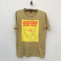 Good Condition, cracked on printing and tiny holes. Size: S Composition: 100% Organic Cotton Measurements in Inches: Garment Lying Flat. Armpit to Armpit: 20.5 Top to Bottom: 27.5 •Yes this item is still available. •It will not be sold out or cheaper off site. •Hit purchase with confidence, your item will be shipped out within 3-5 business days of purchase; tracking is always included. •I curate items to be sold as is and often rework them including tie-dye, bleaching, distressing and stretching. •I do not wash clothing due to possible allergic reactions from the different types of detergents. •Flaws have been shown in the pics. Please use the zoom feature for more details. •Please leave your phone number on the note while make a purchase. •Ask as many questions as you like. All items are final sale. Our business policy is 100% Customers Satisfaction. So don't worry about purchasing an item from us. We are looking forward to having business with many customers.Thanks.