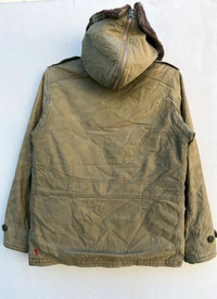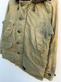 Good Condition, some sign of sun faded. Size: 2 Composition: Cotton, Other Fibres Measurements in Inches: Garment Lying Flat. Armpit to Armpit: 22 Top to Bottom: 29 Shoulders:18 Sleeve Length:25.5 •Yes this item is still available. •It will not be sold out or cheaper off site. •Hit purchase with confidence, your item will be shipped out within 3-5 business days of purchase; tracking is always included. •I curate items to be sold as is and often rework them including tie-dye, bleaching, distressing and stretching. •I do not wash clothing due to possible allergic reactions from the different types of detergents. •Flaws have been shown in the pics. Please use the zoom feature for more details. •Please leave your phone number on the note while make a purchase. •Ask as many questions as you like. All items are final sale. Our business policy is 100% Customers Satisfaction. So don't worry about purchasing an item from us. We are looking forward to having business with many customers.Thanks.