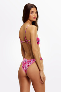 The Ana in Azalea by Sommer Swim is a classic bralette bikini top featuring adjustable straps and gathered cup detail. We recommend sizing up for fuller bust coverage. As part of Sommer Swim's STAR GIRL swimwear collection, this bralette style bikini top has luxurious features which includes brushed vintage gold hardware and ruched cup details. Mix and match the Ana Azalea bikini top with any Sommer Swim bikini bottoms. Explore more from our bralette bikini tops collection to complete your resort-ready look. DETAILS Features - Bralette bikini top - Silk Effect fabric - Adjustable straps - Ruched cup detail - Print hand drawn in Lake Como - Custom brushed vintage effect gold toggles - Fully lined for extra support and coverage - 76% Nylon 24% Spandex Care Instructions To ensure correct treatment please refer to individual care labels on each product. Rinse in cold water and dry in shade. MODEL SIZE & FIT Adriana is wearing a size XS bikini top and size S bikini bottom. She is 172cm tall measuring 80cm bust, 61cm waist and 93cm hips with a 80B cup. Beth is wearing a size M bikini top and size M bikini bottom. She is 170cm tall measuring a 92cm bust, 69cm waist and 103cm hips with a 34D cup.