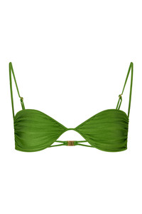 The Ana in Cactus by Sommer Swim is a classic bralette bikini top featuring adjustable straps and gathered cup detail. We recommend sizing up for fuller bust coverage. As part of Sommer Swim's AURELIA swimwear collection, this bralette style bikini top has luxurious features which includes brushed vintage gold hardware and ruched cup details. Mix and match the Ana Cactus bikini top with any Sommer Swim bikini bottoms. Complete the look or find more bikini options in our bralette bikini tops collection – crafted for modern, confident summer style. DETAILS Features - Bralette bikini top - Lustrous shine - Adjustable straps - Ruched cup detail with discreet side-supporting boning insert - Gold-plated nickel-free, chlorine and salt-resistant hardware clasp - Fully lined for extra support and coverage - Finest quality Italian Xtra Life Lycra - 80% Nylon 20% Elastane Care Instructions To ensure correct treatment please refer to individual care labels on each product. Rinse in cold water and dry in shade. MODEL SIZE & FIT Our model is wearing a size S bikini top and size S bikini bottom. She is 178cm tall measuring 87cm bust, 61cm waist and 93cm hips with a full C cup.