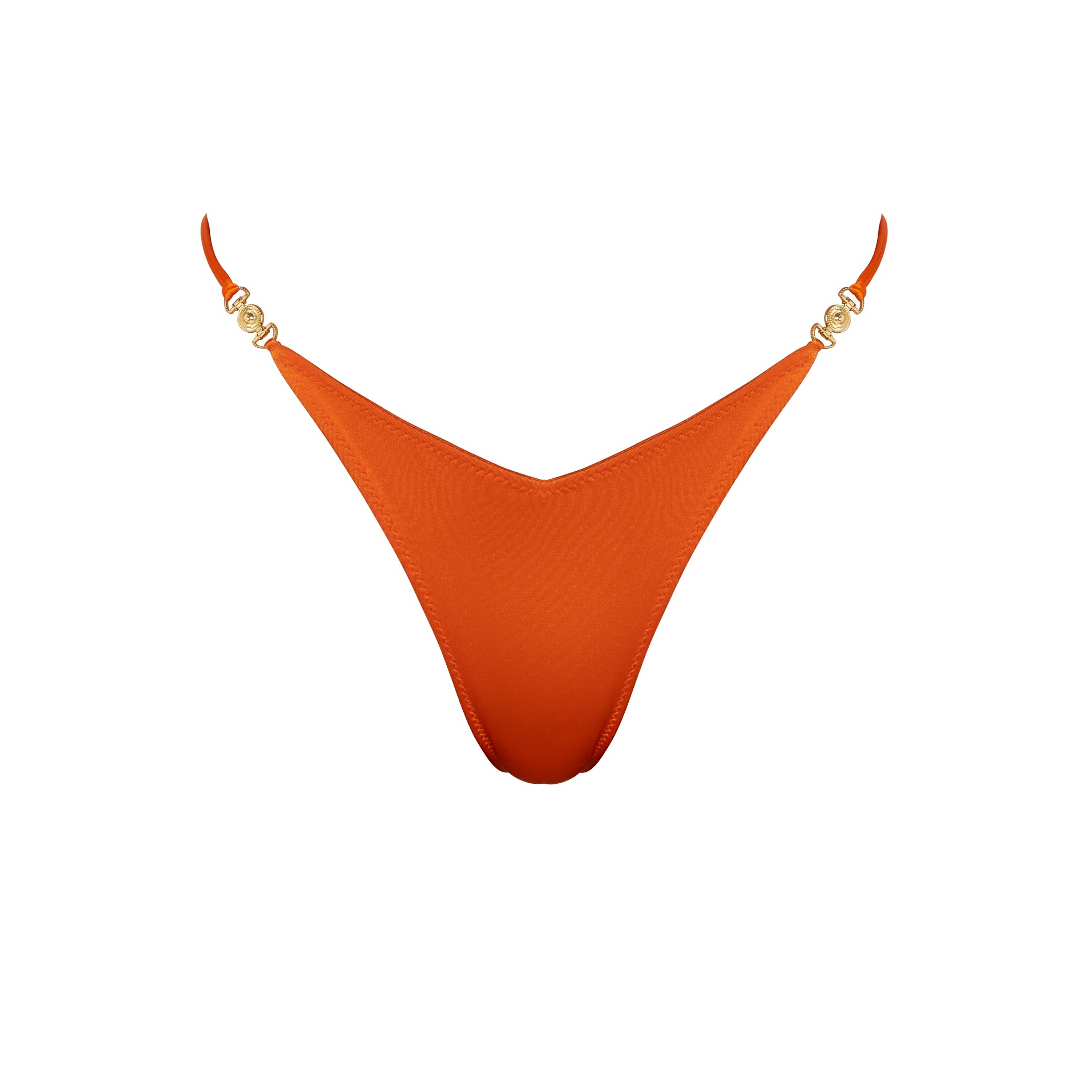 The Lia in Egitto by Sommer Swim is a brazilian bikini bottom featuring a V-cut front with gold hardware detailing. As part of Sommer Swim's Arabesque swimwear collection, this brazilian bikini bottom has luxurious features which include a lustrous shine and double lining for comfort. Mix and match the Lia Egitto bottom with any Sommer Swim bikini tops. DETAILS Features - Brazilian thong bikini bottoms - V-Cut - Front gold trim detailing - Luxurious feel - Lustrous shine - Double lined - Finest quality Italian Xtra Life Lycra - 80% Nylon 20% Elastane Care Instructions To ensure correct treatment please refer to individual care labels on each product. Rinse after use, Cold gentle machine wash separately or hand wash with lukewarm water using mild detergent. Dry in shade. Model Size & Fit Our model is wearing a size S bikini top and size S bikini bottoms. She is 174cm tall measuring 81cm bust, 61cm waist and 93cm hips with a full B cup.