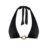 The Ryan in Nero by Sommer Swim is a halter style bikini top with a gold front ring feature, thicker band for extra support and adjustability around the neck As part of Sommer Swim's Dolce Mare swimwear collection, this halter bikini top has luxurious features which include a lustrous shine and double lining for comfort and support. Mix and match the Ryan Nero Top with any Sommer Swim bikini bottoms. Sommer Swim’s signature halter bikini tops blend timeless style with modern sophistication, perfect for sun-soaked escapes. Complete your look with the Ryan Nero halter bikini top, a must-have for your swimwear collection. DETAILS Features - Halter style bikini top - Front gold ring feature - Tie neck and back - Luxurious feel - Lustrous shine - Double lined - Push up - Extra support - medium to fuller coverage - Finest quality Italian Xtra Life Lycra - 80% Nylon 20% Elastane Care Instructions To ensure correct treatment please refer to individual care labels on each product. Rinse after use, Cold gentle machine wash separately or hand wash with lukewarm water using mild detergent. Dry in shade. MODEL SIZE & FIT Our model is wearing a size S bikini top and size S bikini bottoms. She is 174cm tall measuring 88cm bust, 61cm waist and 94cm hips with a full C cup.