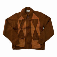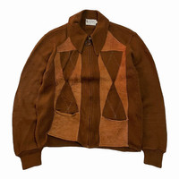 Vintage 60s Orlon Acrylic Zip Cardigan Sweater Mix Leather