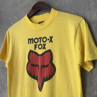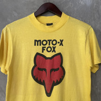 Vintage 70's MOTO-X FOX Factory Inc T-Shirt Racing VMX Motocross BMX Dirt Bike . Single Stitch All Around . Tag Vintage Anvil Brand . Made In USA . Size Small . Pit to Pit 48cm, Lenght 72cm, Shoulder 47cm Arm Lenght 22cm . Used Vintage Condition . Deffect stain . [ PAYMENT & NOTICE ] ✅NO RETURN/REFUND ✅Do message me if you have any question about this item ✅This is USED item, so don’t expected it to be like NEW condition‼️ ✅All piece are measured inches while laying flat ✅Colour might be different due lighting effect ✅I do combine multiple pakage. Buying more will save on shipping ✅JUST OFFER YOUR PRICE✅ 📌FOLLOW ME AND CHECK MY OTHER ITEM📌 🌟THANK YOU FOR VISITING MY STORE🌟