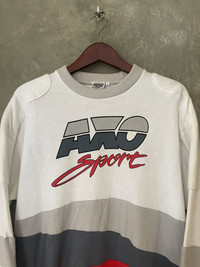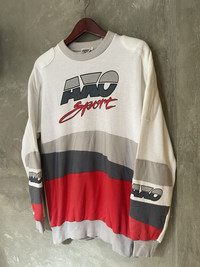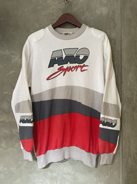 Vintage AXO Sport Team Racing Motocross Jersey VMX Racewear Sweatshirt . Made In Japan . Size Large . Pit to pit 55 cm, Lenght 75 cm, Shoulder 58 cm, Arm Lenght 63 cm. Used Good Condition .