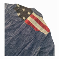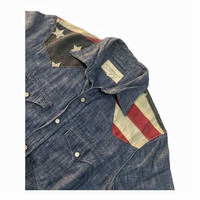Ralph Lauren Denim Supply Western Patch American Flag Denim Work Shirt . Size Xsmall . Pit to pit 47cm. Lenght 71cm, Shoulder 41cm, Arm Lenght 20cm. Used Good condition .