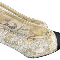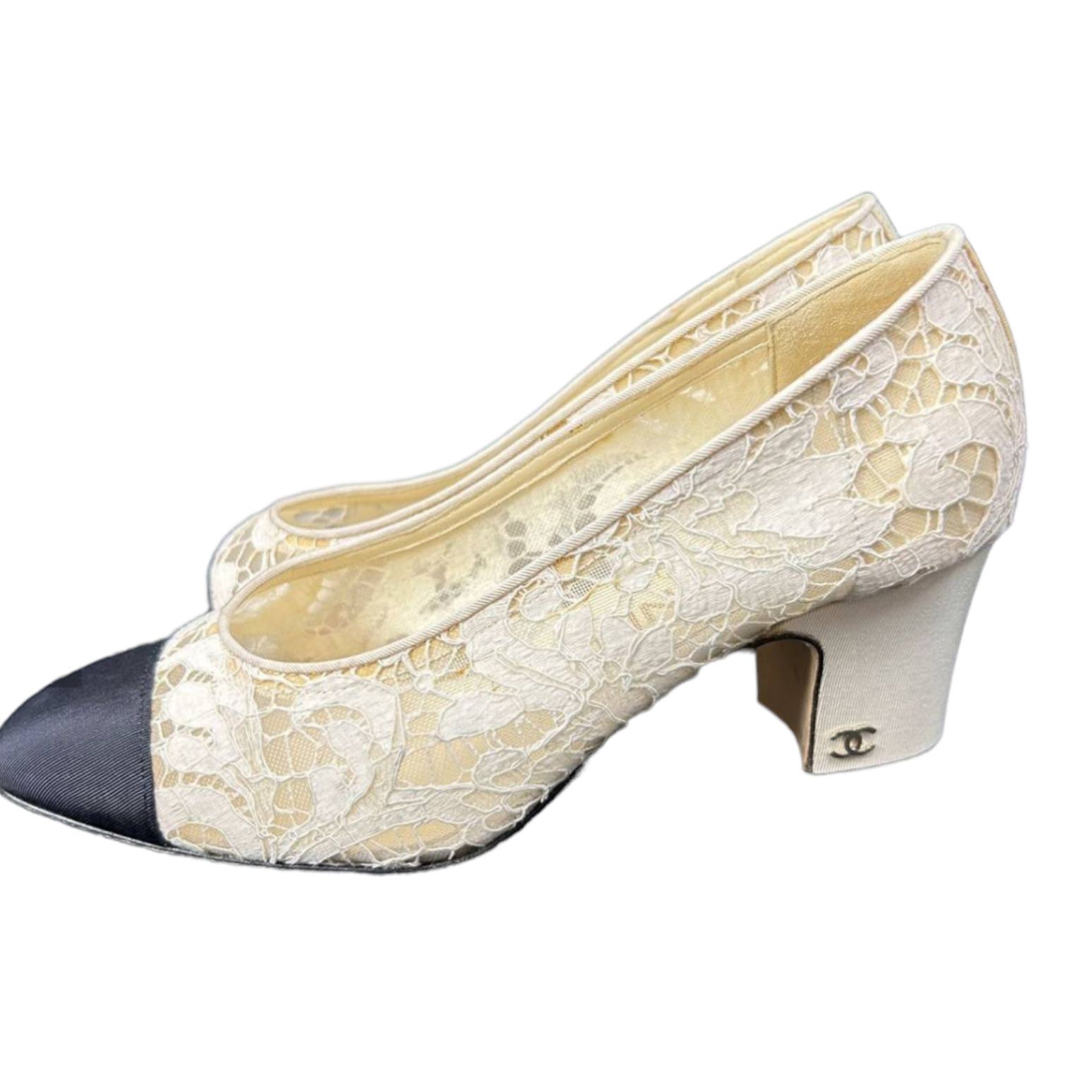 Chanel Lace with Grosgrain Toe Caps Pumps