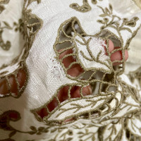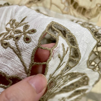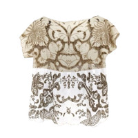 Era: Resort 2016; by Clare Waight Keller. Label: Chloé. Item: Eyelet linen blouse. Size: FR36. Main color: White, beige, and brown. Pattern: Floral. Features: Jewel neckline, short scalloped sleeves, scalloped high-low hem. Condition: There are a few tears and snags along the eyelets, but not obvious when worn. There is wear to the overall fabric. #Chloe #eyelet #summer #designer #neutral