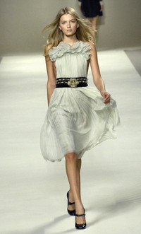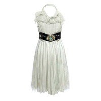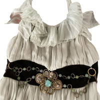 Era: F/W 2007. Label: Chloé. Item: Embellished silk halter dress. Size: FR40. Main color: Green and brown. Pattern: - Features: A-line, halter neck, semi-precious stones embellished brown velvet waistline. Condition: There is light wear to all components and may have light scratches throughout the fabric. #chloe #mididress #silkdress #archivalfashion #runwaypiece