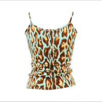 Era: Resort 2008. Label: Christian Dior Paris. Item: Camisole top. Size: FR36. Main color: Orange, brown, and blue. Pattern: Leopard print. Features: By John Galliano, two thin straps, leopard-printed ribbed fabric all over, low scoop neckline. Condition: There is light wear to the overall fabric. #leopardprint #JohnGalliano #vintage #archival