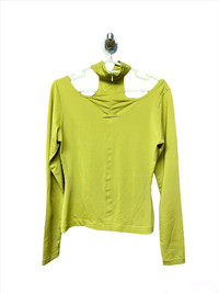 Era: 2000s. Label: Jean Paul Gaultier Femme. Item: Long-sleeved top. Size: IT40. Main color: Green. Pattern: - Features: Built-in choker with hidden zipper at the back. Condition: Minor moth-bites along the sleeves fabric as pictured but none are holes; not obvious when worn. #vintage #JeanPaulGaultier #archivalfashion #designer #iconic #y2k #rave #statementtop Size: IT40. Color: Green. Condition: 8/10. Note: There are minor moth-bites along the sleeves fabric as pictured but none are holes; not very visible when worn.