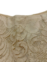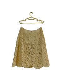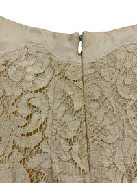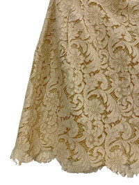 Era: Circa 2000s. Label: Christian Lacroix. Item: Lace skirt with scalloped hem. Size: FR38. Main color: Cream. Pattern: Floral. Features: Needlepoint detail at the waistline, ornate floral lace with eyelash detail at the hem, sits below the natural waist and has a slightly-flared shape, fastens with a hidden zipper at the back. Condition: There are small brown spots due to humidity throughout the fabric that may come out with more dry-cleaning. #vintage #ChristianLacrois #archivalfashion #designer #iconic #y2k #laceskirt