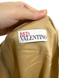Era: Circa 2010s. Label: RED Valentino. Item: Shift dress with fluted hem. Size: IT44. Main color: Beige. Pattern: - Features: Satin trims to the flounces at the hem, fastens with an exposed zipper at the back. Condition: There are tiny brown humidity spots in some areas on the fabric that may come off with dry-cleaning. #REDValentino #Valentino #flutedhem #ruffles #shiftdress #nudedress