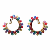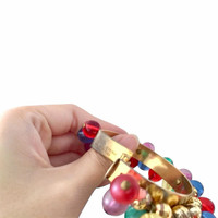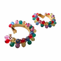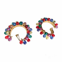 Era: S/S 1991. Label: Gianni Versace. Item: Embellished large hoop earrings. Size: Extra large. Main color: Red, yellow, green, blue, purple, and gold. Pattern: - Features: By Ugo Correani, gold-plated metal, have lightweight gold, blue, red, yellow, green, and purple plastic beads that moves, fastens with clip-backs. Condition: There is wear to some of the beads and scratches to the gold-plating. #GianniVersace #archival #vintage