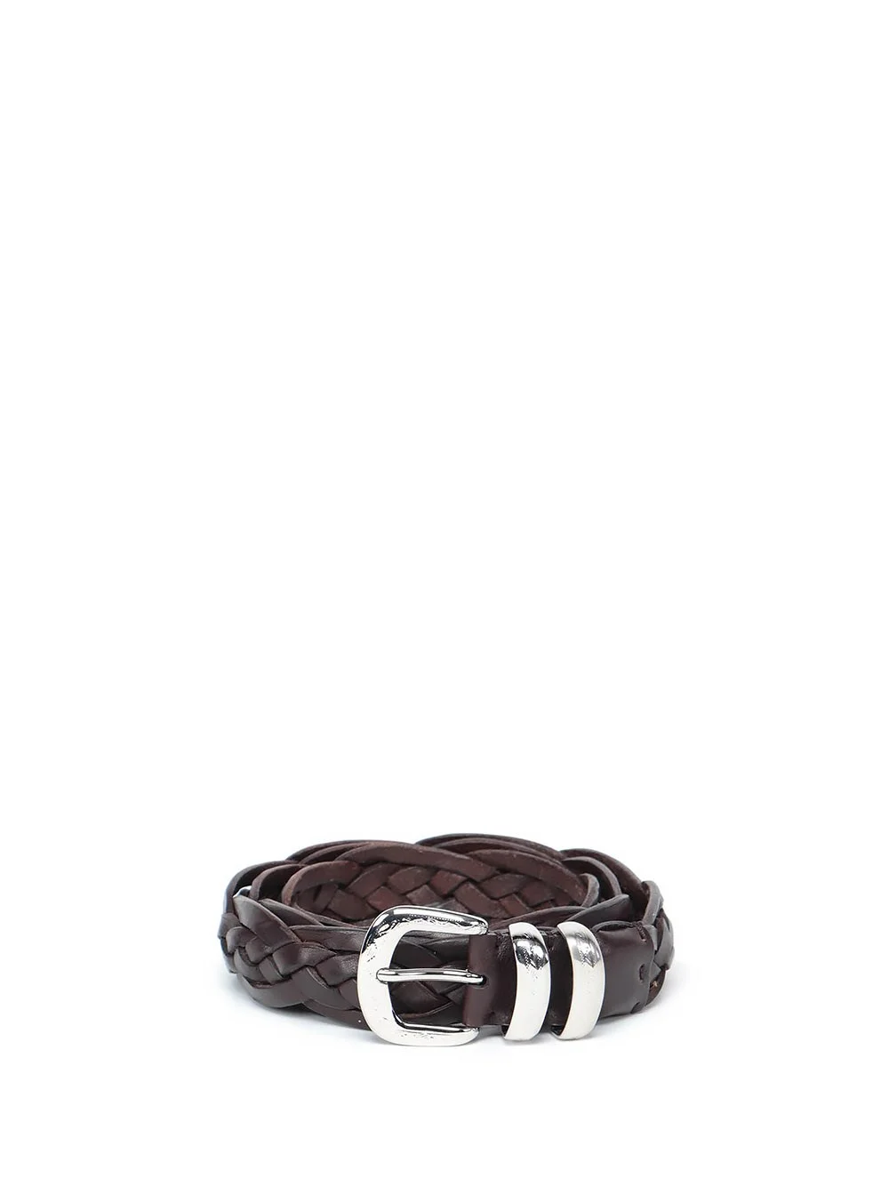 Composition: Calf Leather Made In: Italy Dark brown • leather • silver-tone hardware • braided strap • punch-hole detailing • buckle fastening Size: Height 3 cm