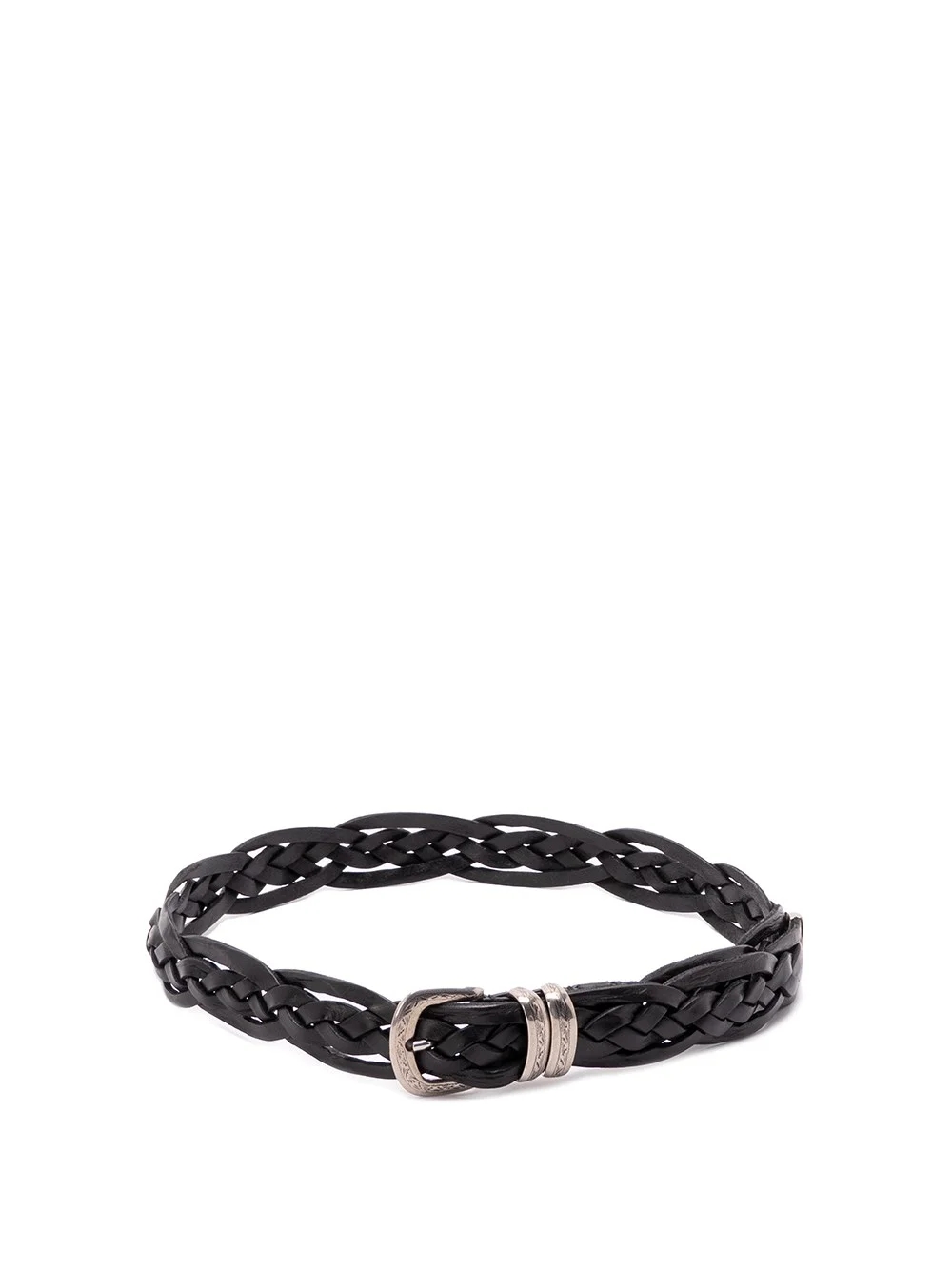 Braided calfskin belt with detailed buckle and tip